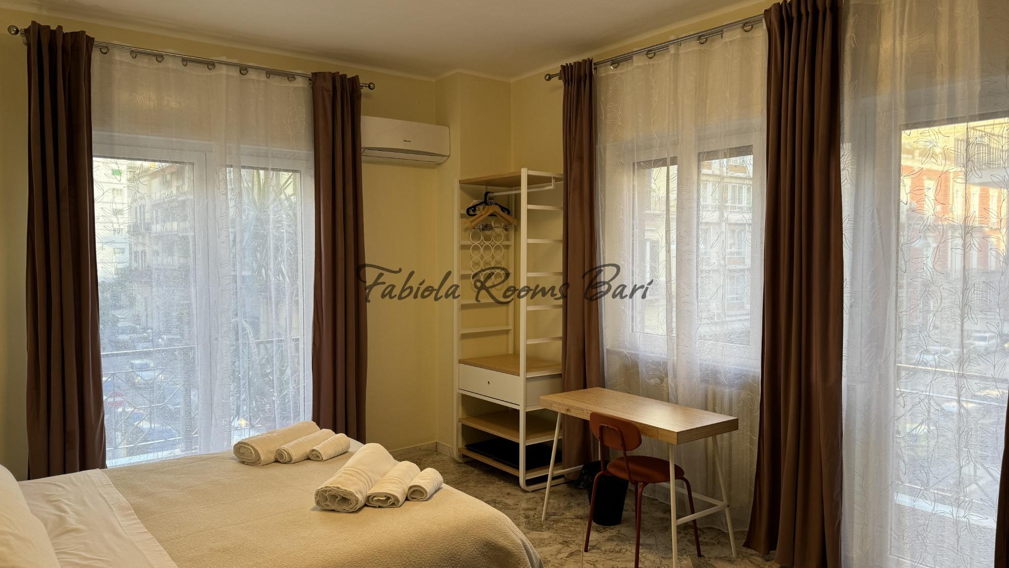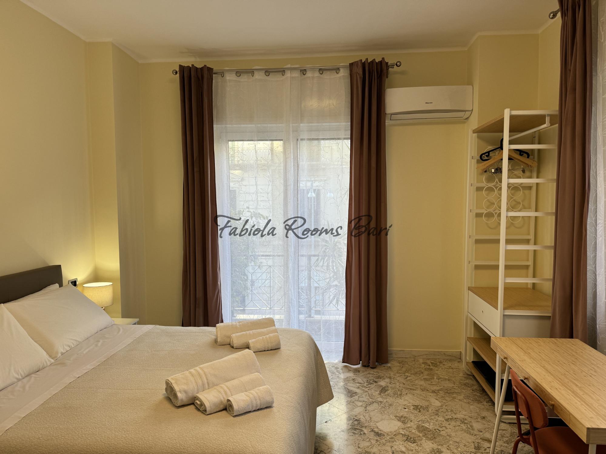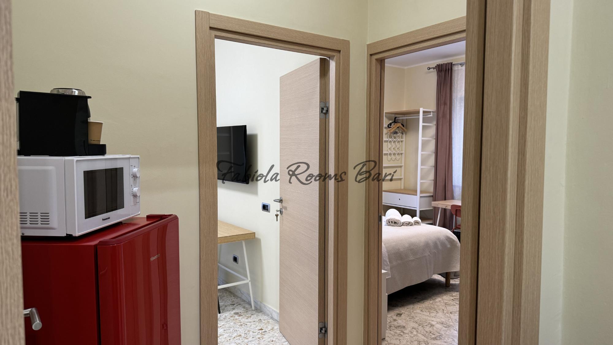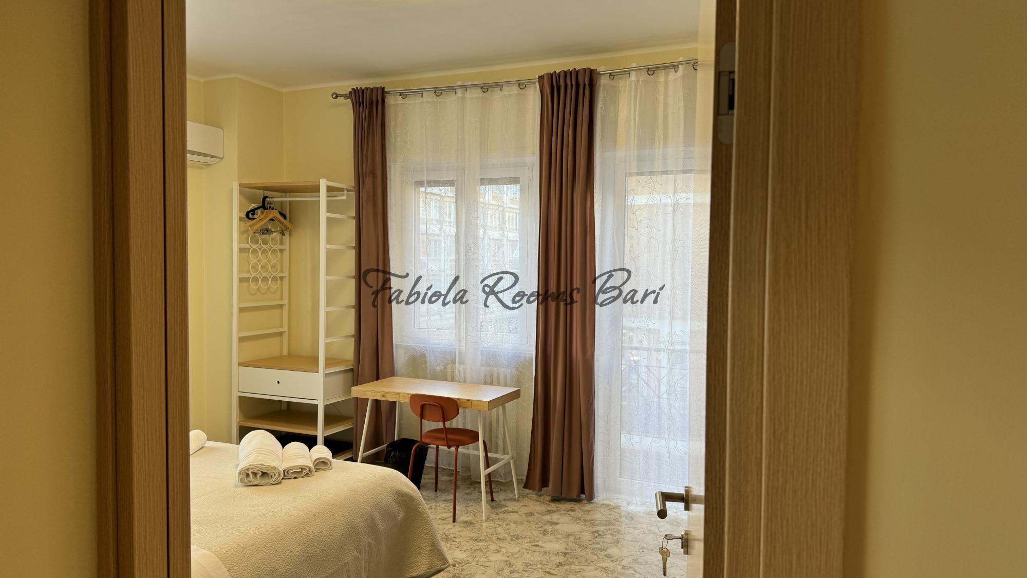 Fabiola Rooms si trova nel centro di Bari, in una posizione comoda per muoversi a piedi tra le principali attrazioni della città e le vie più vivaci. L’alloggio propone due camere luminose che condividono un bagno, ideali per chi cerca un soggiorno semplice ma curato, con tutti i comfort essenziali. Le stanze sono dotate di aria condizionata, TV a schermo piatto, scrivania con sedia, bollitore, armadio e connessione Wi-Fi veloce. Gli ospiti possono usufruire anche di una zona comune con frigorifero spazioso, freezer e macchina del caffè, pensata per garantire praticità e relax in ogni momento della giornata. La struttura rappresenta una soluzione accogliente e funzionale per chi desidera scoprire Bari e vivere l’atmosfera autentica del suo centro, tra vicoli ricchi di storia, profumi di mare e l’ospitalità tipica del Sud.